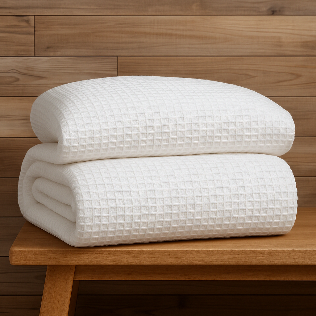 Colcha Hotelera de Noche en Waffle Color Blanca. Composición 60% Algodón / 40% Poliéster. Sin Forro.