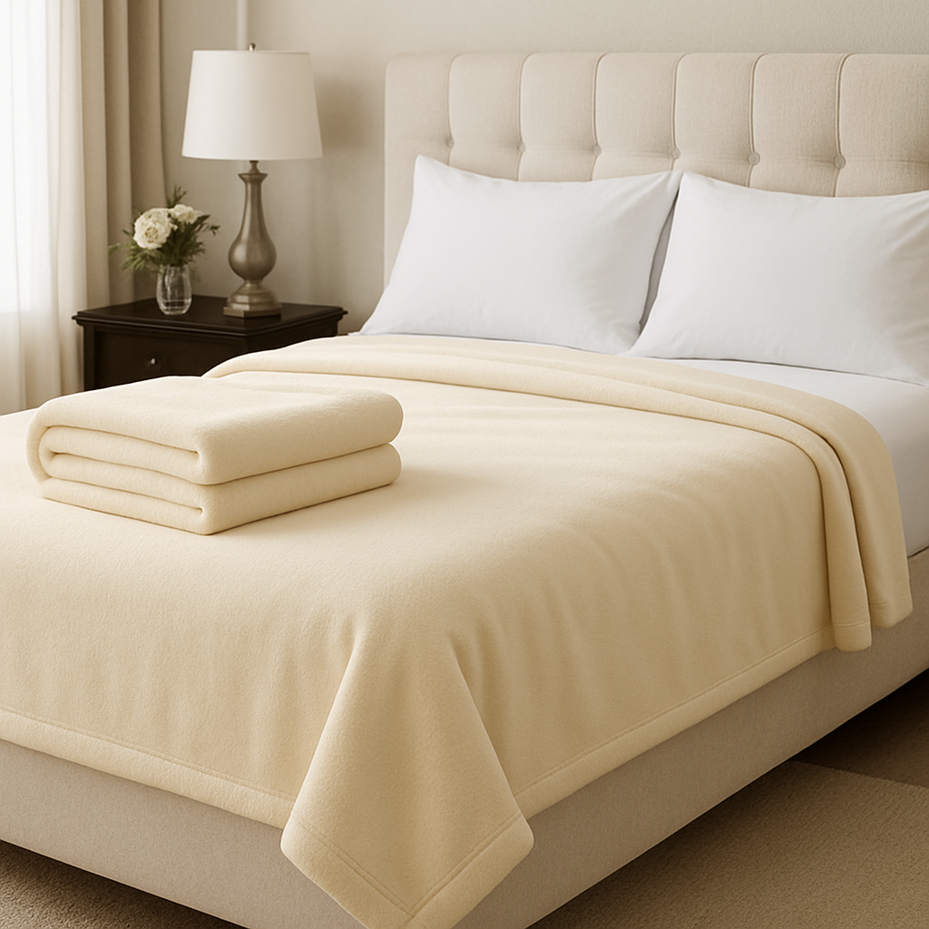 Cobertor Hotelero BCOLOR Tela 85% Acrilico Virgen / 15% Pie de Algodón. Color Camel.